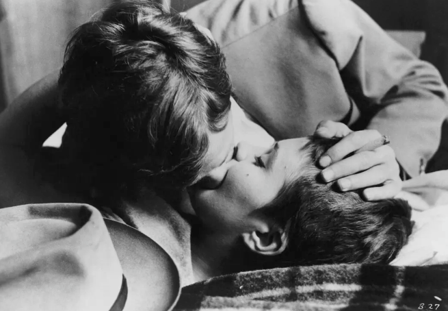 《精疲力尽》公映时,观众蜂拥而至,以为这是一部浪漫悲情的黑帮片。这让戈达尔错愕。在他心里,这部处女作是他的《爱丽丝漫游仙境》,他的创作逻辑,恰似爱丽丝童年生活的符号和镜像在梦的秩序中重组。电影里,女主角珍·西宝和男主角贝尔蒙多都喜欢读书,他们在对话中频繁地引用里尔克。这电影本身也是俯拾皆是的“引语”组成的,信手借用或致敬1940年代以后的美国黑色电影和B级片。亨弗莱·鲍嘉的海报出现在镜头下,贝尔蒙多的扮相和表演有意识地模仿鲍嘉;配乐里出现了《枪疯》的原声;金钱和情欲交锋的画面上,能看到塞缪尔·富勒和弗里兹·朗的导演风格。以及,选择西宝作女主角,是戈达尔对普雷明格导演的告白和示好,普雷明格发掘了西宝,让她先后主演《圣女贞德》和《你好,忧愁》。