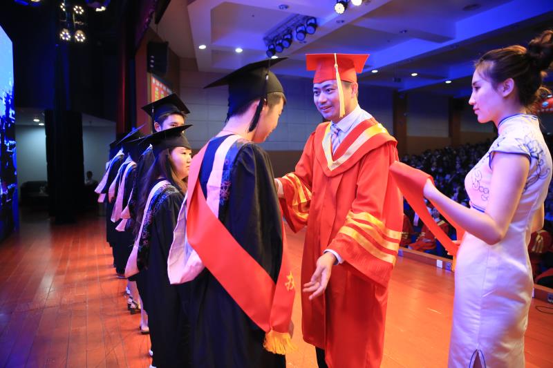 随后,校领导为市级、校级优秀毕业生拨穗并颁发毕业证书。李昕授权各二级学院院长向所在学院毕业生颁发毕业证书和学位证书。