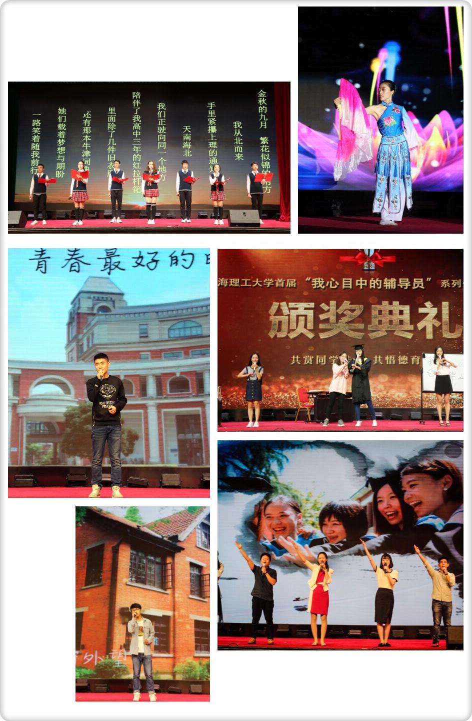 文章类一等奖获奖者付梦双以诵读作品片段《时间教会我感恩》的形式讲述了她与辅导员陈红梅老师的故事,并在颁奖典礼现场为辅导员献花。视频类获奖作品《我们,一起走过的四年》以辅导员谈心谈话、走访寝室、答疑解惑、班级建设、课堂教学为切入点,呈现出学生心目中辅导员的形象。舞台剧《我的辅导员》完全由学生自编自导自演,从入学、教育、毕业、工作四个关键时间点出发,将辅导员与学生们的故事娓娓道来。学生为辅导员制作编排的独舞《秀色》,一人一扇,尽显学生青春洋溢的精神风貌;歌曲串烧《致敬心目中的那个他/她》,均为学生原创,以歌声表达了他们对辅导员的感恩之情;诗朗诵《记忆里,我们发生的故事》改编自文章类一等奖作品,字里行间表达出浓浓的师生情义;最后,辅导员老师的创意节目《献给学生的歌》,用中、英、日、德、粤五种形式进行演唱,声声动情,感染了现场每一位师生,也将颁奖典礼气氛推向高潮。