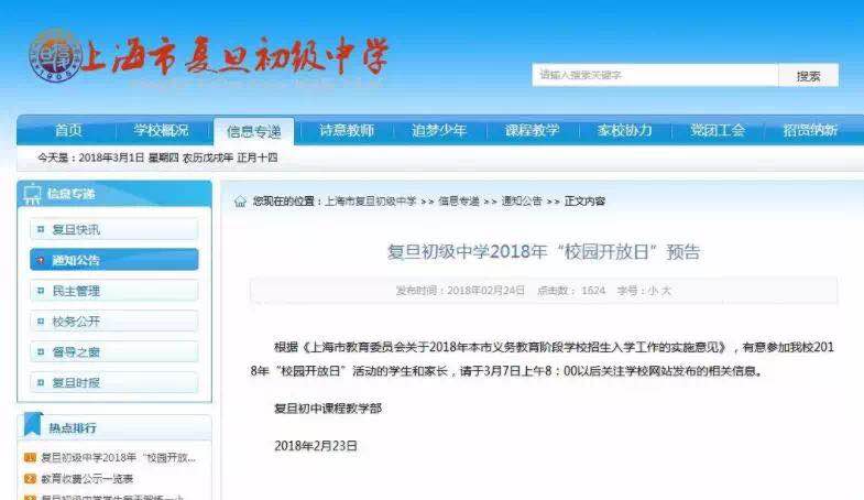 开放日预告:有意参加我校2018年“校园开放日”活动的学生和家长,请于3月7日上午8:00以后关注学校网站发布的相关信息。