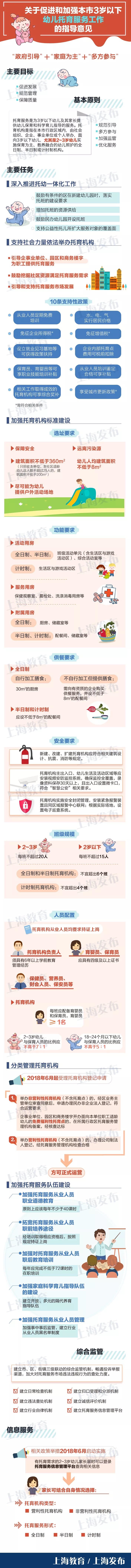 由于自然人口增长和全面“二孩”政策等综合因素影响,上海的托育需求正不断提高。为了缓解托育服务的供需矛盾,促进本市托育服务工作的开展,去年年底,本市教育、卫生、民政、工商、妇联等16个部门联手共同研究构建本市0-3岁幼儿托育服务体系和托育服务机构管理的长效机制。今天,《关于促进和加强本市3岁以下幼儿托育服务工作的指导意见》(以下简称《指导意见》)《上海市3岁以下幼儿托育机构管理暂行办法》(以下简称《管理暂行办法》)《上海市3岁以下幼儿托育机构设置标准(试行)》(以下简称《设置标准》)正式出台。后续还将出台上海市3岁以下托育机构从业人员与幼儿园师资队伍建设规划,加强和保障从业人员队伍建设。为了回应幼儿健康安全保障、从业人员资质、托育服务内容等家长们最关切的问题,相关领域专家一一给出权威解答。