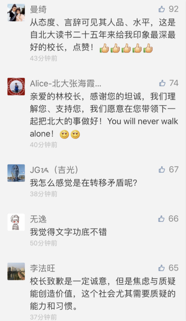 林建华称,作为北京大学校长这个错误让很多同学和朋友失望了,并承认他的文字功底并不好。