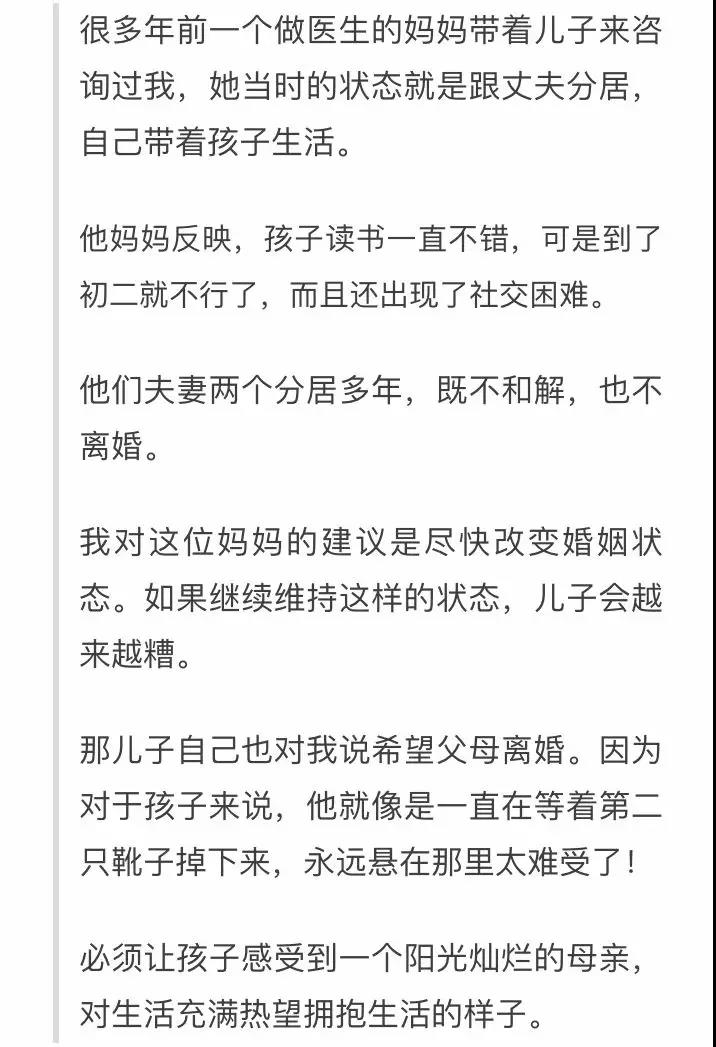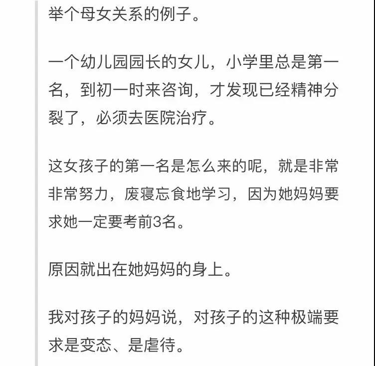 一个母亲会影响三代。我做临床咨询多年的经验发现,所有的问题根子大多在母亲这里。抓住母亲这个牛鼻子,就一抓一个准。