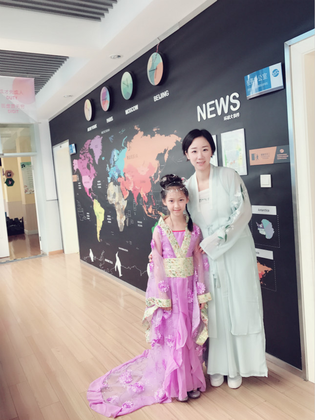 ▲世外小学的外教老师们也穿上了中国元素的服装,与孩子们一起共度中秋节。