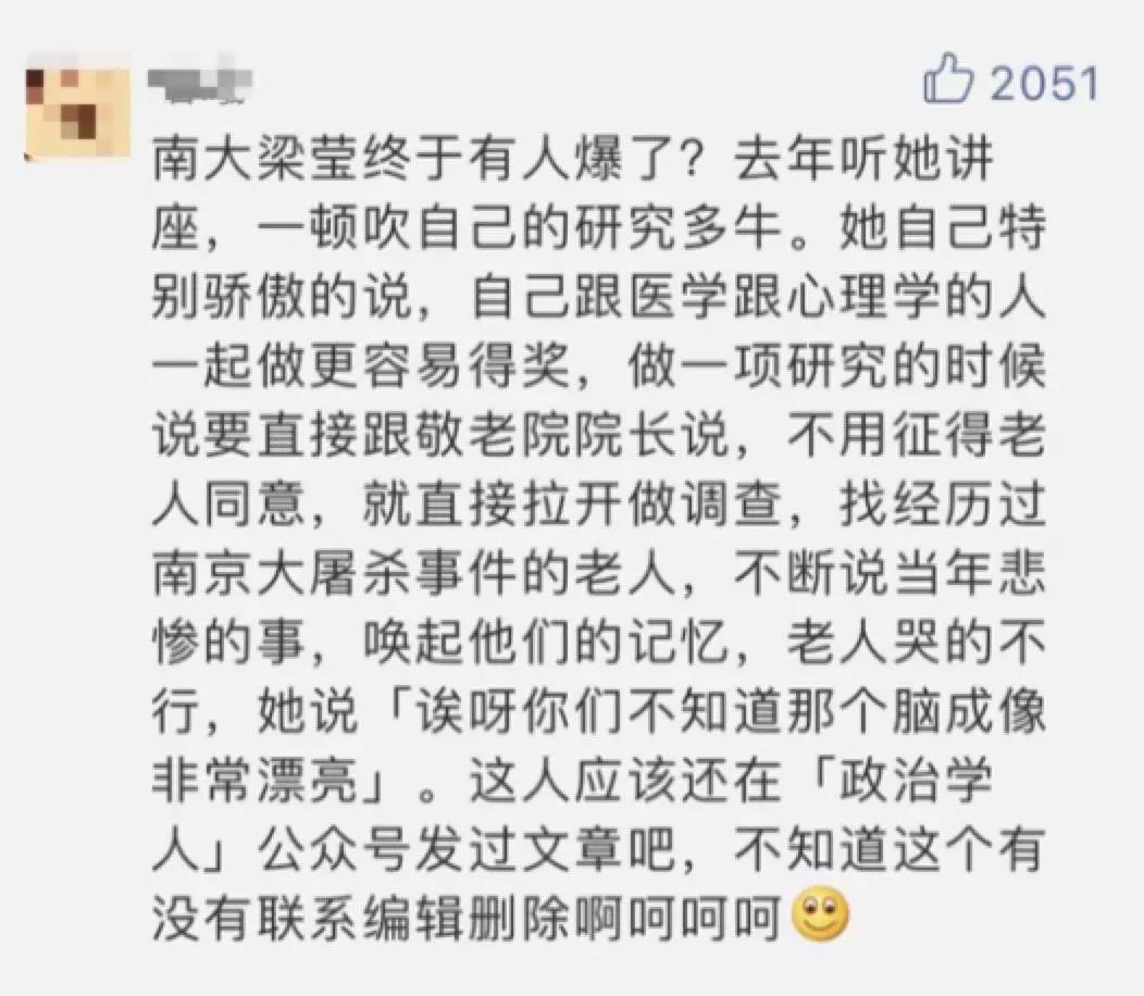 然而在学术圈自查之外,梁莹被曝撤稿事件仅仅一天后,她的学生却叫好,还曝光了许多新的黑幕: