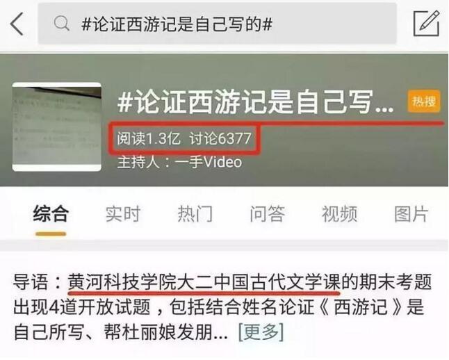 日前《西游记》又上热搜,起因竟是郑州市黄河科技学院古代文学的期末考试题,要求结合本人姓名,论证《西游记》是自己所写。