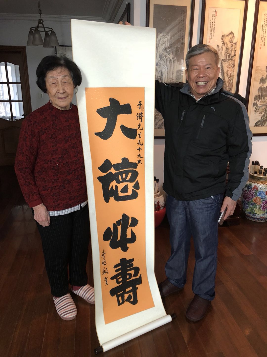 再过一个月不到,于漪即将迎来90岁的生日。算一算,这位耄耋老人,比新中国还整整大了20岁。许序修还为于漪带来一幅字:“大德必寿”。他说:“有高尚道德的人,生命也会有更多的色彩,于漪老师是所有教师应该学习的榜样。”