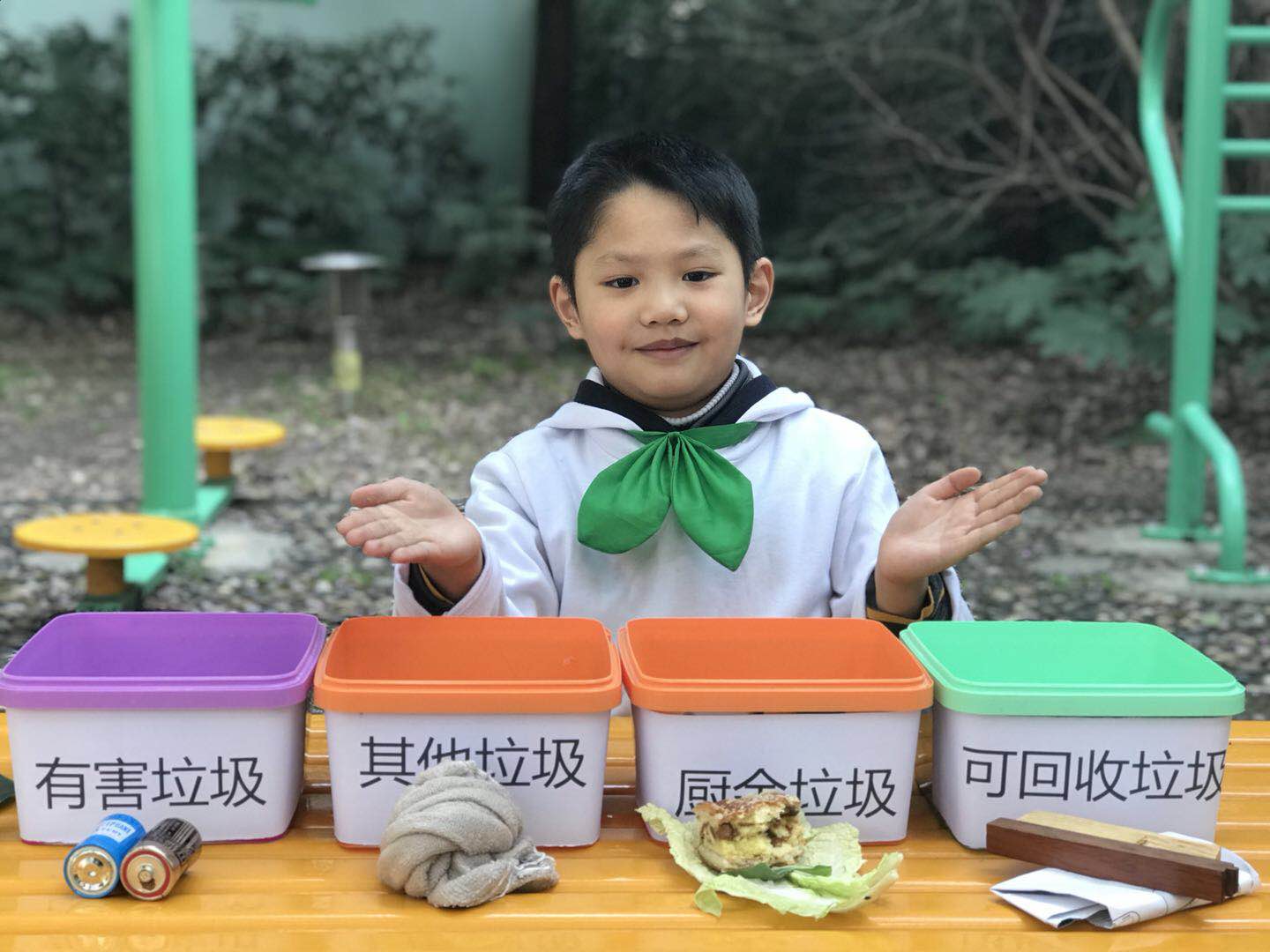 大(三)班的洪代蒙小朋友说,平时在家里,爸爸妈妈会指导他进行垃圾分类。这样能把没用的垃圾重新变成有用的东西,这样可以保护环境。