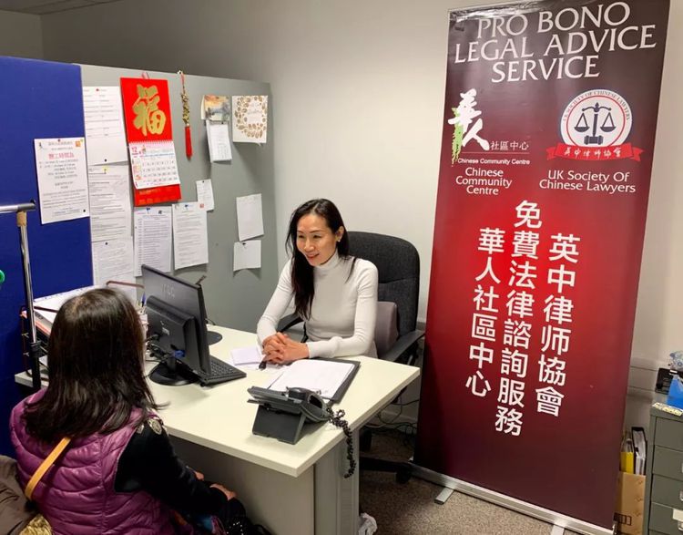 2017年2月开始,英中律师协会与伦敦华人社区中心合作发起免费法律咨询。定时定点,每周六中心提前约好需要法律咨询的客人,律师协会派志愿者律师前去,帮助客人解决问题,她自己也曾去过很多次。