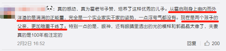 面对媒体的采访,霍启刚多次提到说郭晶晶生育孩子很辛苦。