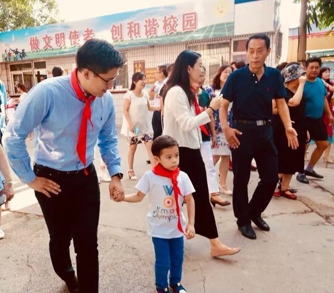 儿子5岁时,带他去拜访郭晶晶的母校,教育儿子“一日为师,终身为父”的意义。