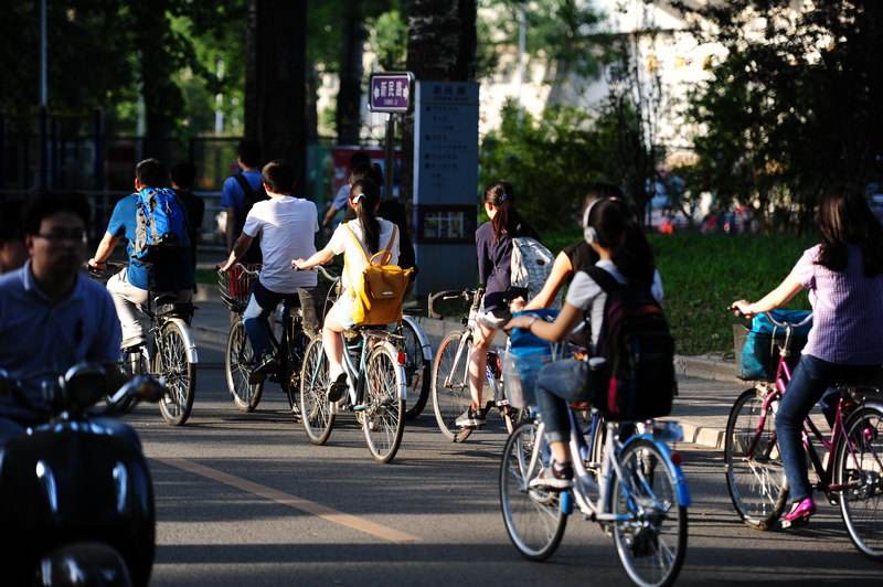在清华的校园里走一走,仿佛漫步大型非机动车停车场,全校有几万辆自行车,并且带后座的都是人生赢家。