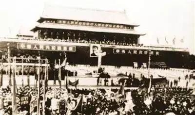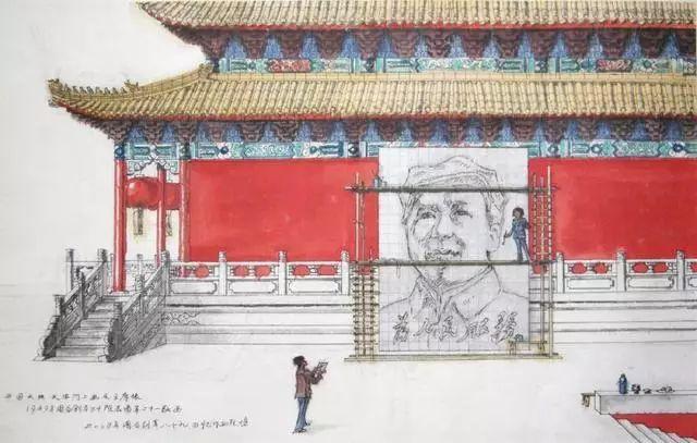 他带着新婚妻子陈若菊,登上了搭建在天安门城楼东侧的大型画架。