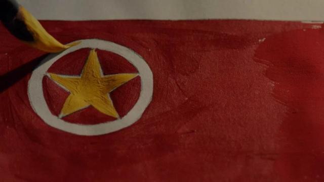 随着镜头推进,老人的笔下逐渐勾勒出传世名画——《五四运动》;随着场景转换,老人又着手为我们所熟识的团旗上色……