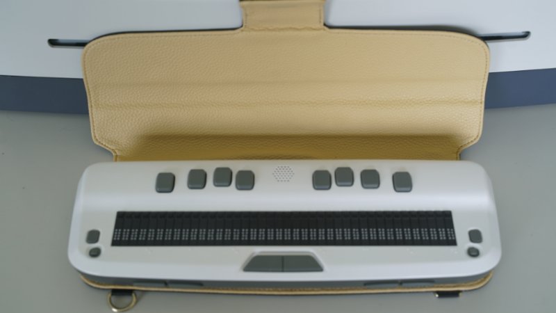 在这里,有盲文教材、盲文图书,盲文点显器、任何一个出入的地方都设置了盲道,电梯也有盲文按键,房间门口是盲文标牌。