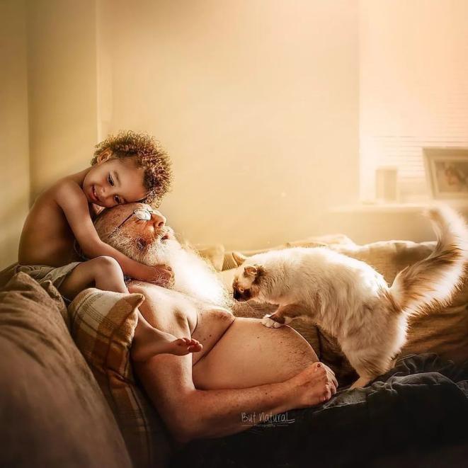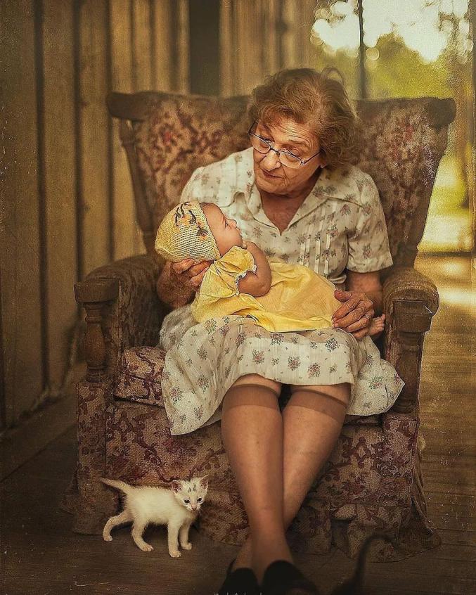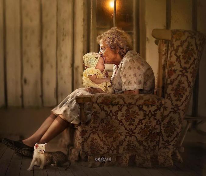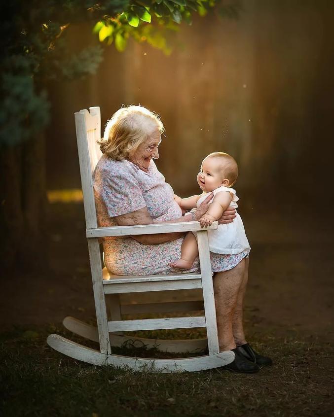 祖孙之间温馨画面的写真照,