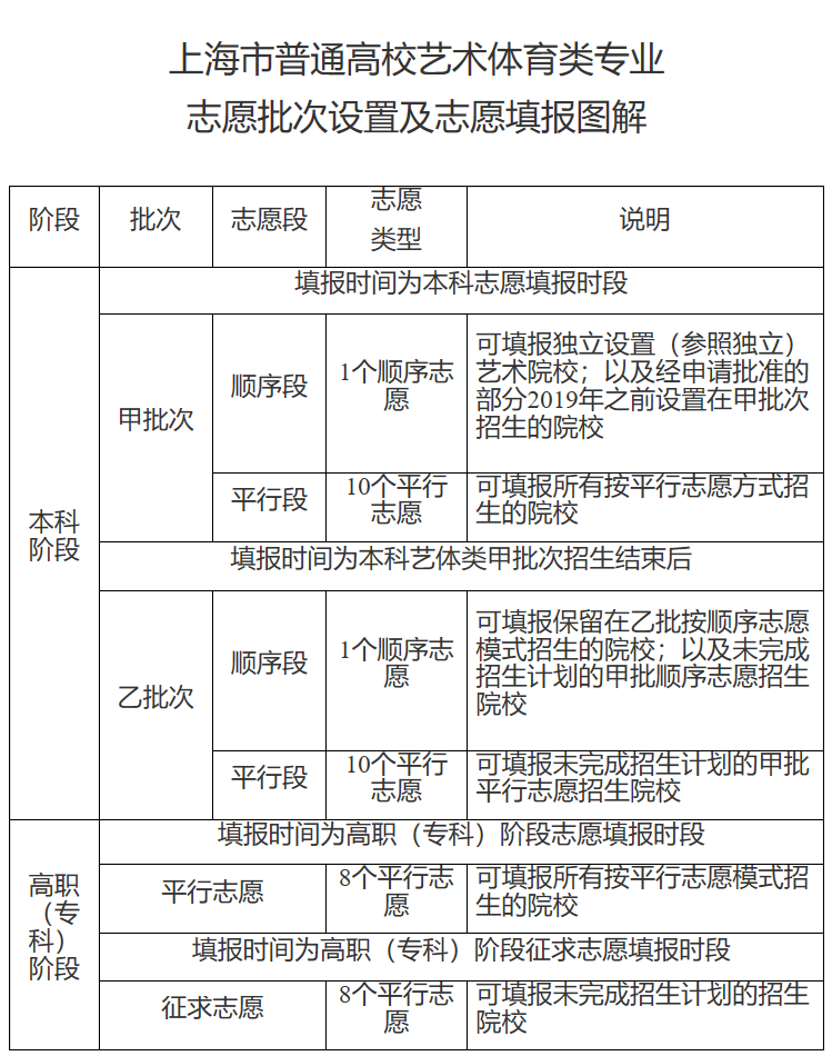 附:1.上海市普通高校艺术体育类专业志愿批次设置及志愿填报图解