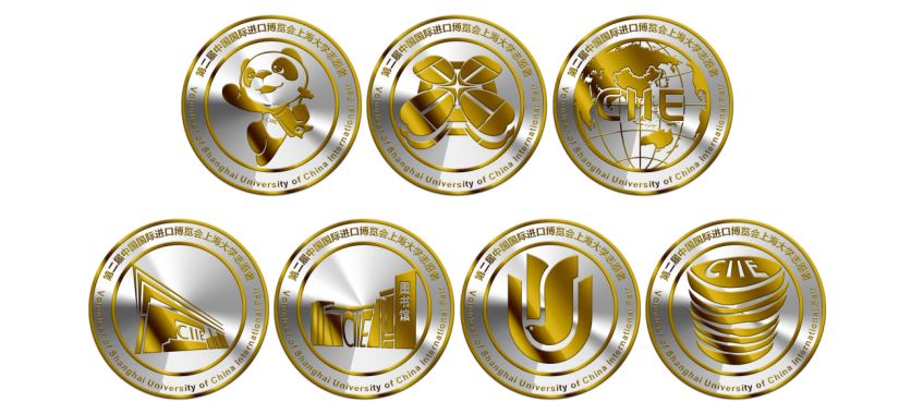 来自上海大学上海美术学院的3位“小叶子”倾心设计了7枚胸章,融合了进博会会徽、吉祥物和四叶草场馆外形3种进博元素,再加上上海大学校徽和标志性建筑等4种上大元素。