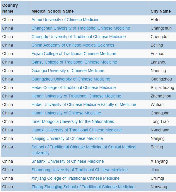 近日,有消息称,北京中医药大学、上海中医药大学、天津中医药大学、辽宁中医药大学、贵州中医药大学、山西中医药大学、黑龙江中医药大学、云南中医药大学等8所中医药大学未被列入《世界医学院校名录》。