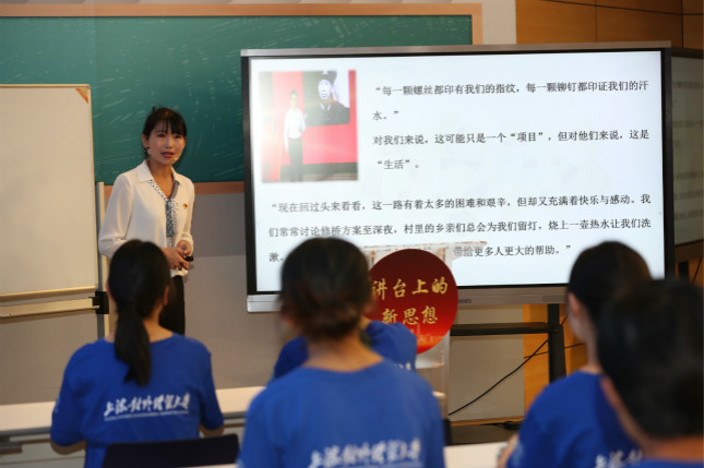 2019年举行近10场“讲台上的新思想”系列教学观摩会,组织大中小学思政课教师在实践中切磋教艺,共同提升。