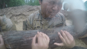 她拖着150斤重的假人反复练习
