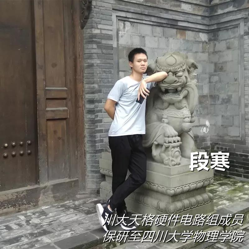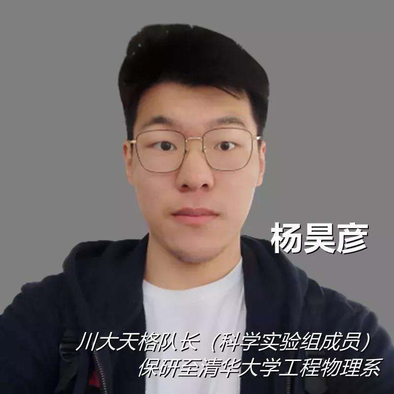核工程与核技术专业,保研至清华大学工物系,研究生攻读方向——核电子学。曾获得国家奖学金,优秀毕业生称号,亚太数学建模一等奖等,担任川大天格队长,以第二作者身份发表一篇SCI论文和一篇会议论文。