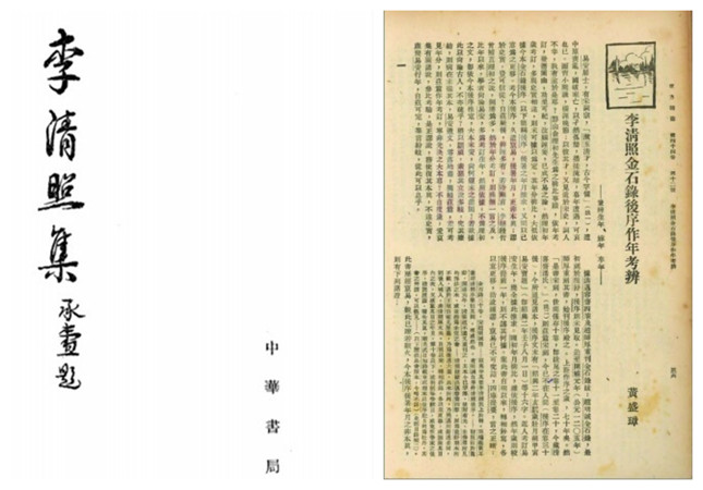 ▲中华书局上海编辑所在1962年整理出版《李清照集》(左图),黄盛璋《李清照金石录后序作年考辨》(右图)