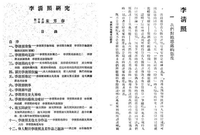 ▲朱芳春在张真园、黎锦熙、吴新斋等人的指导下撰写《李清照研究》(左图),傅东华《李清照》(右图)