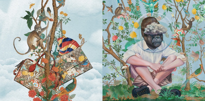 信息内容的独特性还依赖于品牌的公关宣传活动。自Alessandro Michele担任品牌创意总监以来,Gucci通过向艺术示好的方式建立起了全新的、自成体系的品牌形象。从邀请艺术家进行再创作,到在全球范围内举办展览,几乎每一次与艺术相关的活动都能引发话题,成为社交媒体上的热点事件。