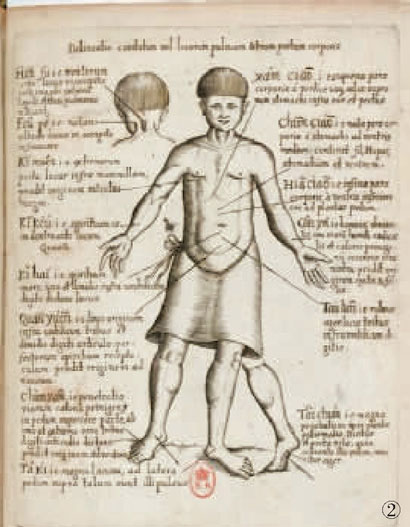 在华耶稣会传教士和医生考察中医的视角、对中医文献选择性的介绍和翻译术语,从另一个侧面显映了正处于变革时期的欧洲医学思想和研究方法特征,比如传教士关心中医“脉博与时间”的测量关系、脉学中“气血循环”是如何运行的,经络所连结的器官是空心器官(脏)和实心器官(腑)等。测量的概念、血液循环理论和人体器官学研究,正是16、17世纪欧洲医学界研究几大热点。卜弥格认为中国人没有解剖学,所以无法说明中国人的身体观,于是借鉴中医的内景图和脏腑图解释中医理论与经络的关系。