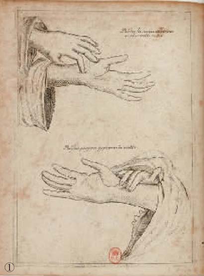 《中医指南》中的诊脉图①、穴图②和脉图③,这些图显然不是中国人画的,而是卜弥格或克莱耶尔请人绘制的。