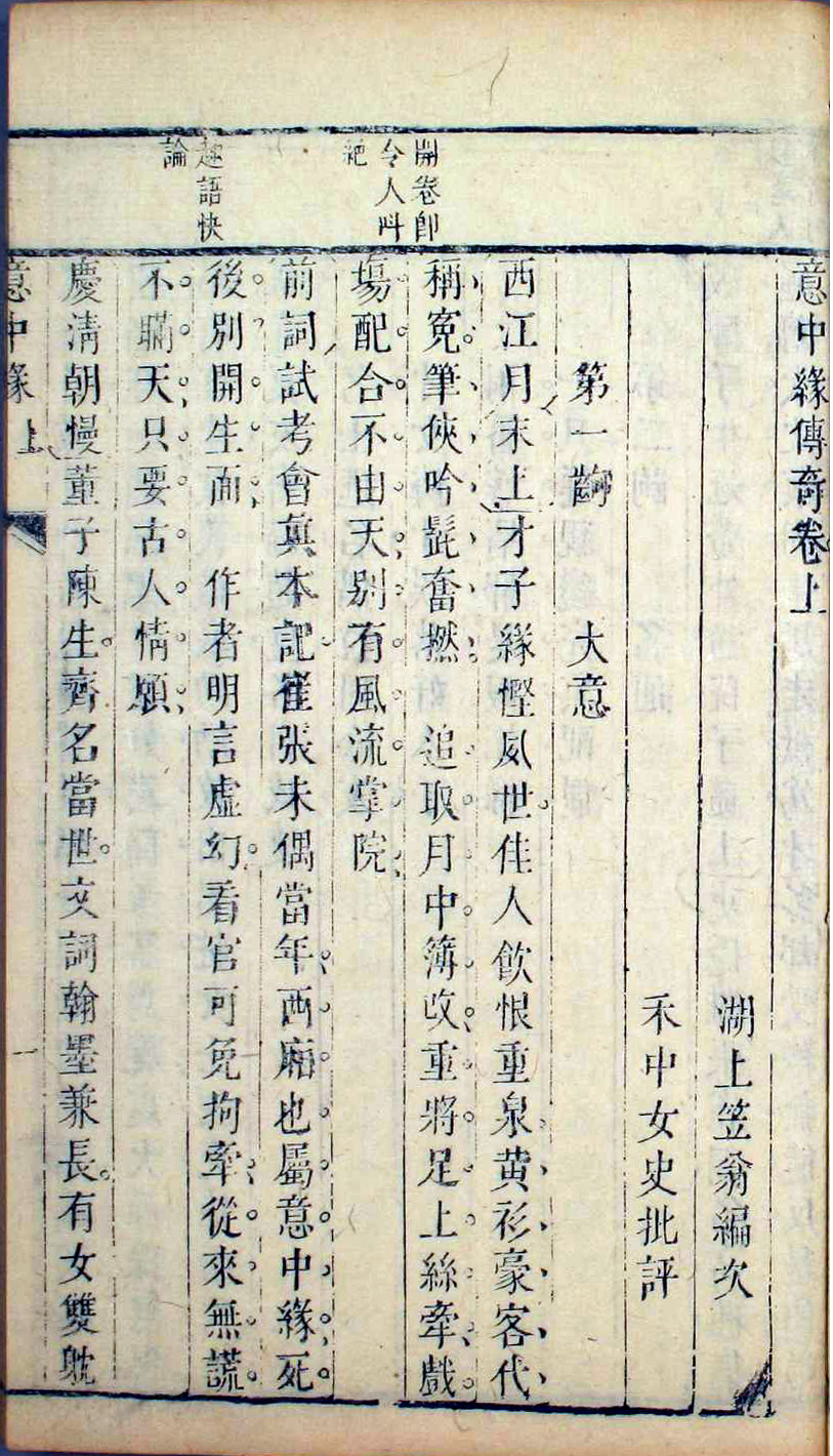 清刻本李渔《意中缘》卷端,日本早稻田大学图书馆藏