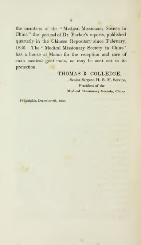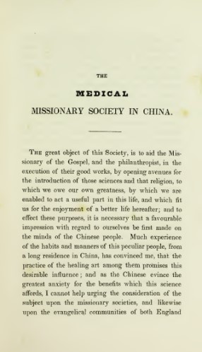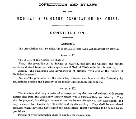 应该提醒研究者的是,提前放弃沿用“中国行医传教会”的官方汉译,等于篡改西医东渐的史实。过去半个世纪,中国大陆地区一手教会史料销声匿迹。与此同时,医学史研究者对百年前的经典英语缺乏达意领会,同时又缺乏具备扎实西方医学积累者的积极参与,故而以讹传讹,误会不少。