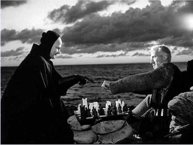 15世纪瑞典教堂画家阿尔伯特斯·皮克托(Albertus Pictor)在斯德哥尔摩一处乡村教堂留下了主题为“与死神对弈”的壁画。这是导演英格玛·伯格曼(Ingmar Bergman)1957年的电影 《第七封印》(The Seventh Seal)的灵感来源。电影讲述了骑士布洛克与黑衣死神对弈,过程中回顾了他在瘟疫蔓延的欧洲大陆的经历。影片同时呈现了命运之手的操弄、人类的挣扎和幸存,更重要的是提醒我们,在命运的棋局中,人类并非时时是高手,相反,有时候面对的棋局非常糟糕。