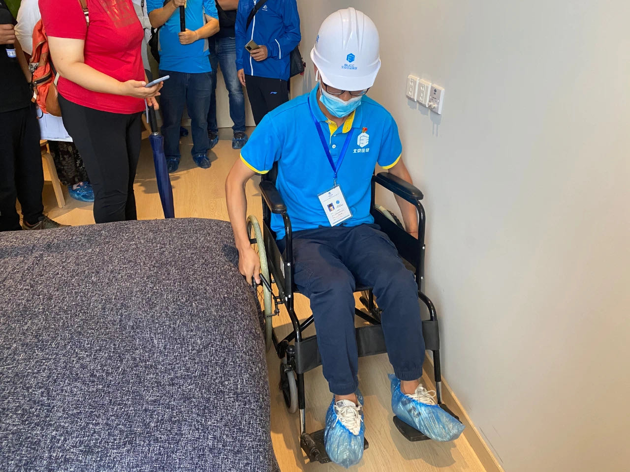 北京市无障碍监督员杜鹏不是第一次来水立方,但每次来都有不一样的发现。“上次我们提出无障碍坐席的护栏高了,这次过来,护栏已经降到90厘米,坐在轮椅上视角好,还能保证安全。”杜鹏指的是位于水立方南侧的观众无障碍坐席。