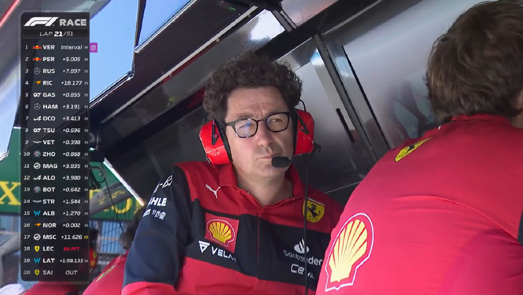 法拉利引擎问题也殃及其他车手。第24圈,暂列第十的周冠宇被车队通知引擎故障,为保住这套动力单元,车队让刚刚闯入积分区的周冠宇提前退赛。这是周冠宇继迈阿密和西班牙站退赛后,第三次因赛车故障退赛。同样使用法拉利引擎的哈斯车手马格努森也在第33圈中途退赛。