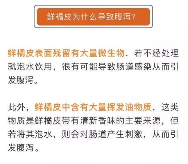有位市民王大妈,就习惯用吃剩下的鲜橘皮泡水,在饮用几天后,出现了呕吐、腹泻、消化不良等食物中毒的症状,经医生检查,罪魁祸首正是泡水用的鲜橘皮。