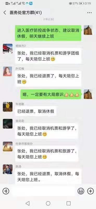 原来,当疫情来临时,科主任还没做取消度假的要求时,医生们早已纷纷主动退票。有的医生因订了国外航空公司的机票,无法退票,大家也毫不犹豫。