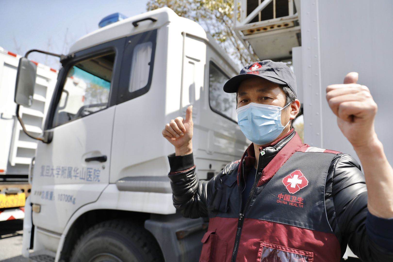 今天一早,在18名队员的保驾护航下,由8辆医学救援车和2辆保障车组成的东方医院国家紧急医学救援队车队从武汉启程返沪。