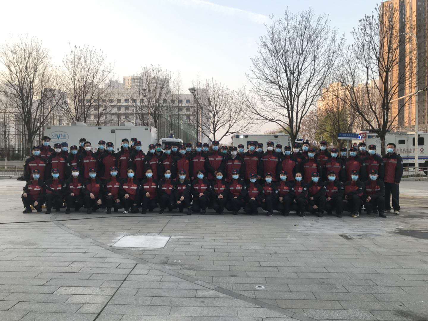 55名队员着救援队服,在武汉留下珍贵的合影。