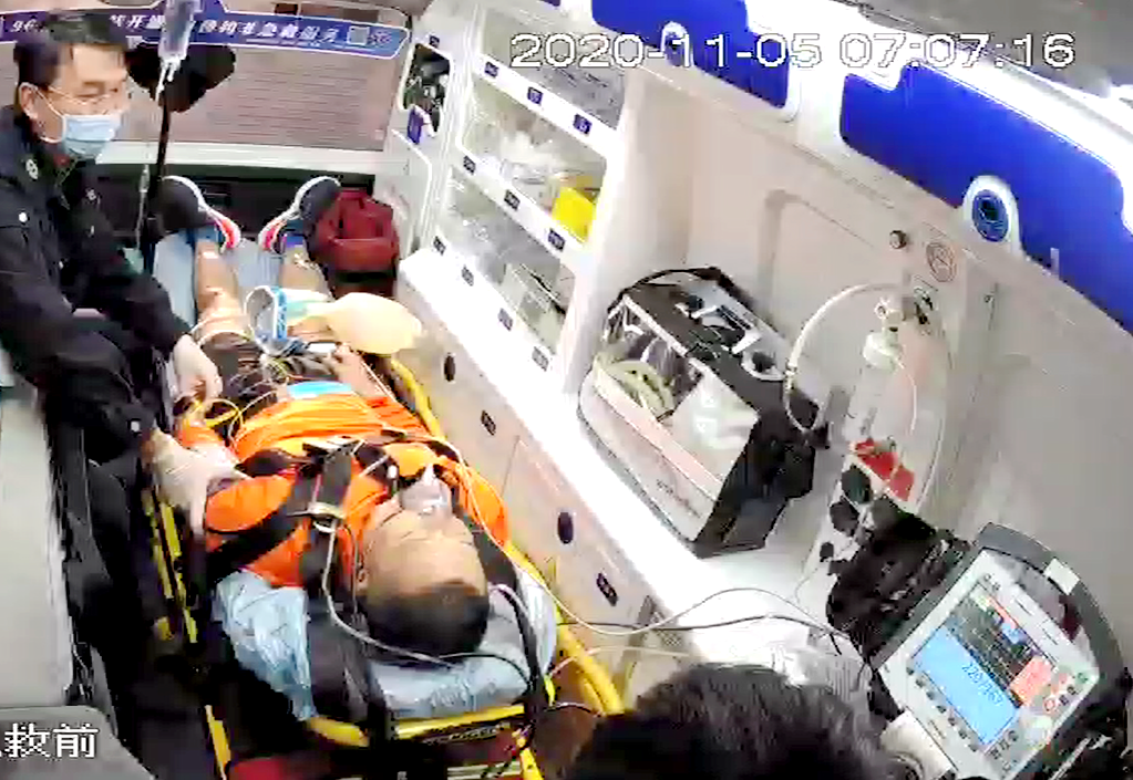 7时10分,到达医院,急诊室已经开通绿色通道,后续院内抢救措施准备就绪,顺利完成交接。