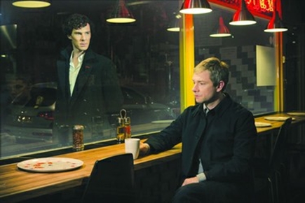 “这还是我们记忆中的那个夏洛克吗?”粉丝们不禁发出这样的感慨。解救华生上演一段“生死时速”,华生婚礼结束后的派对颇有好莱坞情人节档群星片,夏洛克无厘头的对白和滑稽笨拙的神态好似《生活大爆炸》里的极客“谢耳朵”附体。发展到第三季的《神探夏洛克》,与其说是一部翻拍侦探推理片,倒不如看作是一部剧中角色的联欢会,甚至连主演本尼迪克特·康伯巴奇的父母和编剧的妻子也齐齐上阵,在剧中本色出演。从编剧到演员,再到等待中的剧迷,把剧集变成一场联欢,一如剧中那个名为“空灵柩”的粉丝俱乐部,一如华生婚礼后的派对,正剧的身影终于在集体狂欢的现场落寞离去。