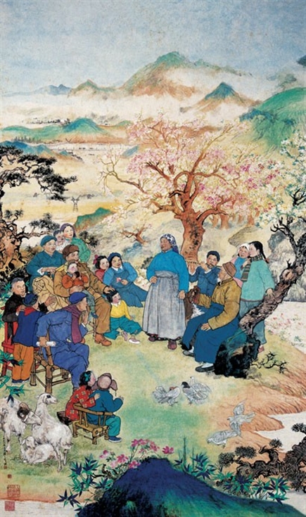 图为最近正式上线的上海中国画院数字博物馆展示的珍贵的画院藏品,程十发创作于1956年的《歌唱祖国的春天》。