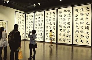 第十六届中国上海国际艺术节参展项目“写意中国·2014中国国家画院美术作品展”日前在中华艺术宫开幕。展览甄选出中国国家画院研究员书法和版画作品共200余幅,集聚了沈鹏、欧阳中石、李铎、李焕民、晁楣、徐匡、广军、阿鸽等国内美术界大家及诸多中青年创作力量。展览将持续至11月23日。