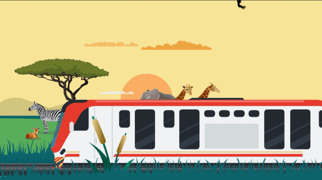 在肯尼亚内罗毕的察沃国家公园(Tsavo National Park),人们可以乘坐从肯尼亚东部港口城市蒙巴萨(Mombasa)到首都内罗毕(Nairobi)的蒙内铁路(Mombasa-Nairobi Railway)列车,在公园内穿行而过。