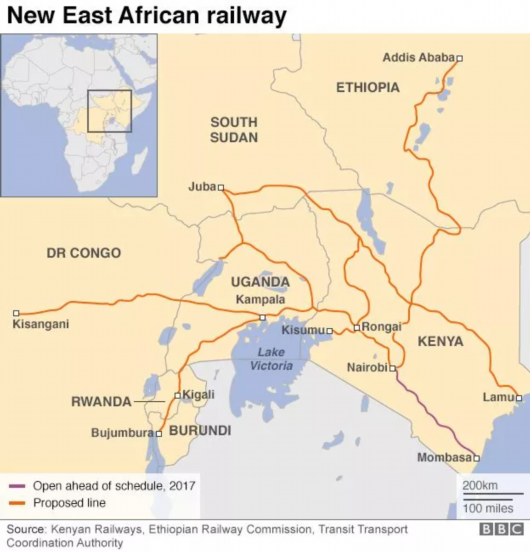 蒙内铁路不仅是肯尼亚的铁路,还是东非铁路网的起始段。