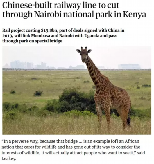 The Guardian 在文章中引用知名环保主义者,肯尼亚野生动物服务中心董事局主席Richard Leakey的话说,蒙内铁路是一个关心野生动物生存的典型案例。