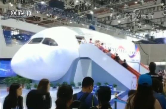 在首次展出的中俄宽体客机CR929的展示样机前,观众早早就排起了长队,准备登机进行参观体验。