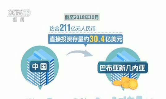 薛冰大使介绍,巴新是中国在太平洋岛国地区最大的投资对象国,截至2018年10月,中国对巴新直接投资存量约30.4亿美元(约合211亿元人民币)。巴新也是中国在太平洋岛国地区第二大贸易伙伴。2018年1至8月,中国和巴新双边贸易额为22.5亿美元(约合156亿元人民币),同比增长34.6%。 中国驻巴布亚新几内亚大使 薛冰:“人文的交流也很多,我们有2万多华人华侨在这里工作生活,我们有将近40家的中资企业在这里投资生产,为当地创造了很多的就业机会。另外我们每年向巴新提供几十名学生的政府奖学金,我们的海军和平方舟号两次访问巴新,为数以万计的患者看病。” 两国友好合作将迎来突破性进展