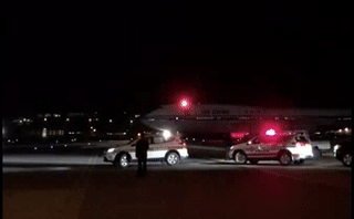 【动图】当地时间晚8点05分左右,习近平乘坐的专机抵达杰克逊国际机场。